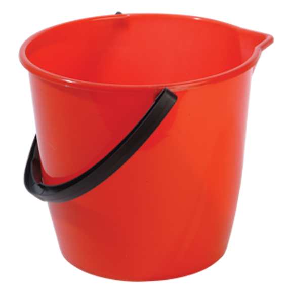 Handy colour coded plastic bucket with pouring lip.