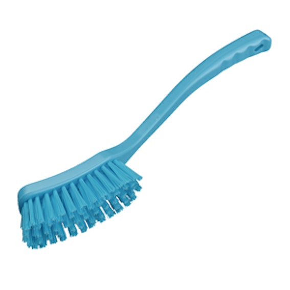 Long handle for cleaning of deep buckets, etc. Stiff brush.