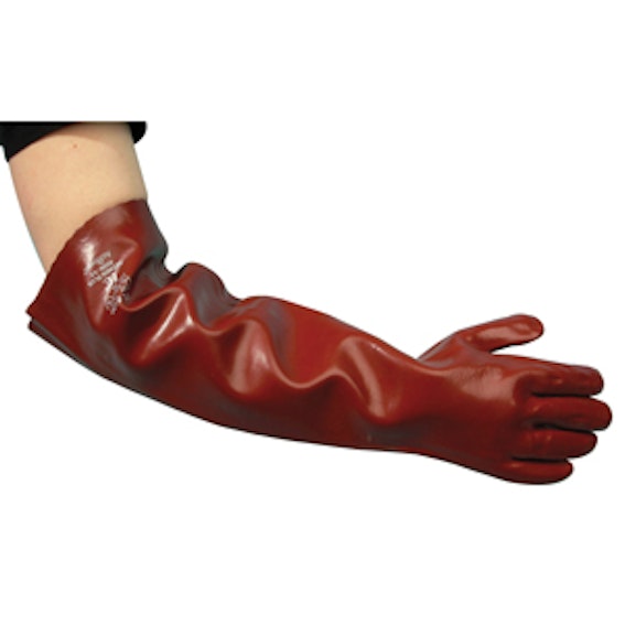 22" heavyweight gauntlet. High resistance to acids, alkalis and oils. Cotton liner absorbs perspiration.